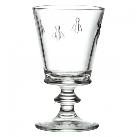 Verre à pied en verre pressé Vert Olive, teinté dans la masse et décoré de quatre abeilles. Cette collection reprend les symboles de la maroquinerie de Napoléon.